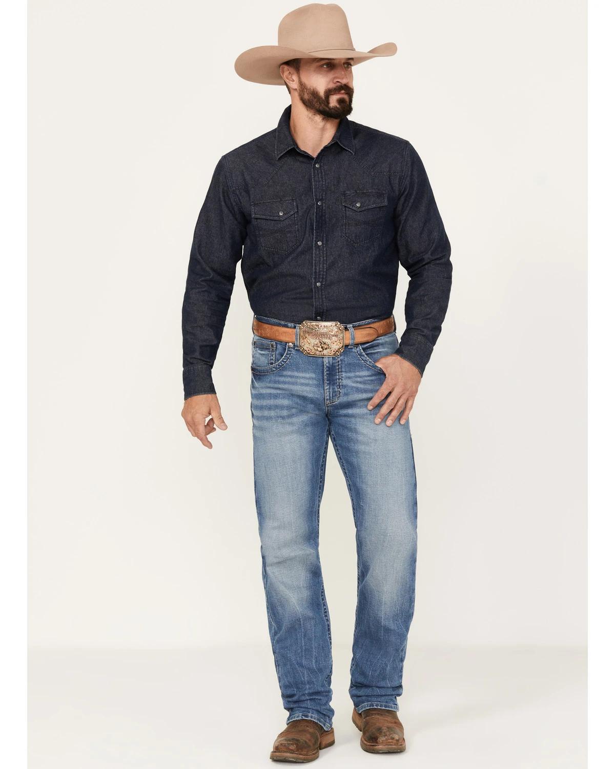 Rock 47 By Wrangler Men’s MRS47 Light / Medium Wash Slim Straight Stretch Denim Jeans